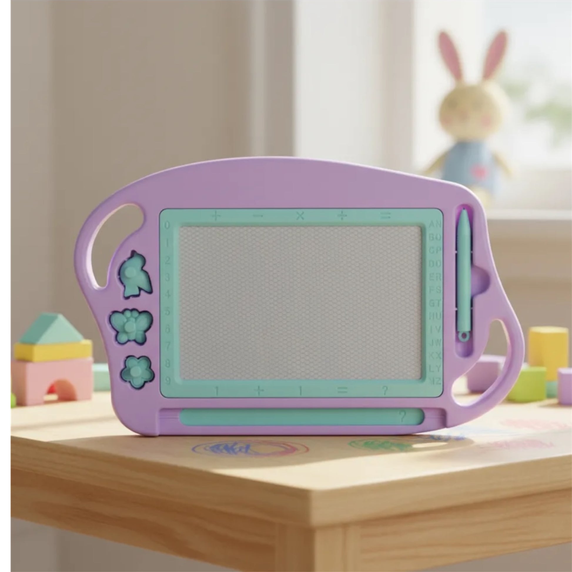 Pizarra mágica lila con sellos